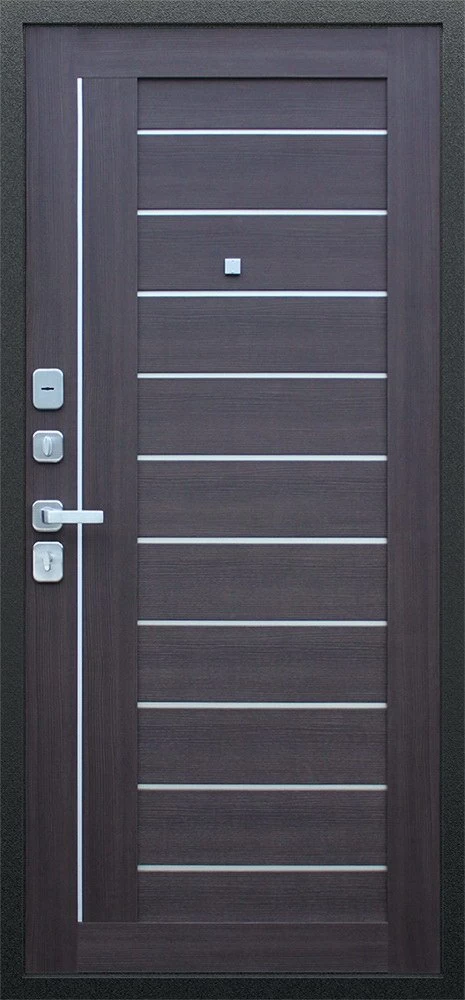 Надежная входная Дверь Соло орех рифленый премиум класса по цене 35 483 руб. Большая толщина стали защитит от проникновения в ваш дом, квартиру или коттедж. Используется очень качественная фурнитура: замки, цилиндры, ручки, защелки. Покрытие и отделка двери изготовлено под внимательным контролем производителя. Дверь имеет долгий срок службы и гарантию.