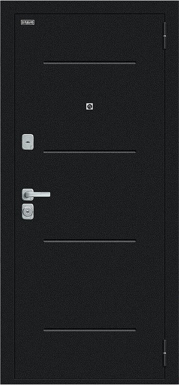 Надежная входная Дверь Браво Техно/BChrome Букле черное/Bianco Melinga премиум класса по цене 34 783 руб. Большая толщина стали защитит от проникновения в ваш дом, квартиру или коттедж. Используется очень качественная фурнитура: замки, цилиндры, ручки, защелки. Покрытие и отделка двери изготовлено под внимательным контролем производителя. Дверь имеет долгий срок службы и гарантию.
