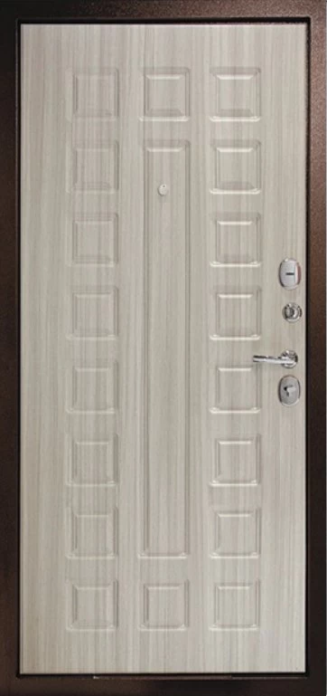 Надежная входная Дверь Рубикон 1 Медь Сандал белый премиум класса по цене 32 603 руб. Большая толщина стали защитит от проникновения в ваш дом, квартиру или коттедж. Используется очень качественная фурнитура: замки, цилиндры, ручки, защелки. Покрытие и отделка двери изготовлено под внимательным контролем производителя. Дверь имеет долгий срок службы и гарантию.