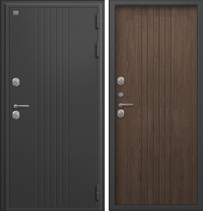 Надежная входная Дверь Термо-90 графит букле - миндаль рифлёный премиум класса по цене 38 283 руб. Большая толщина стали защитит от проникновения в ваш дом, квартиру или коттедж. Используется очень качественная фурнитура: замки, цилиндры, ручки, защелки. Покрытие и отделка двери изготовлено под внимательным контролем производителя. Дверь имеет долгий срок службы и гарантию.